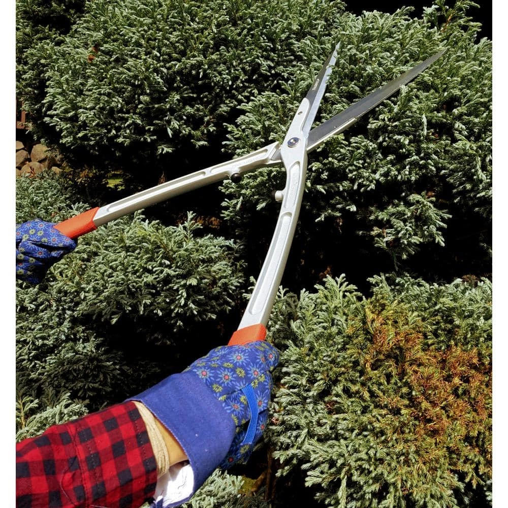 Keep your yard and garden manicured with these Barnel USA 27-1/2 in. drop forged hedge shears. Replaceable hard chromed high carbon steel blades are exceptionally sharp. Heavy-duty drop forged aluminum construction is lightweight yet durable. Handles feature ergonomic non-slip TPR grips.