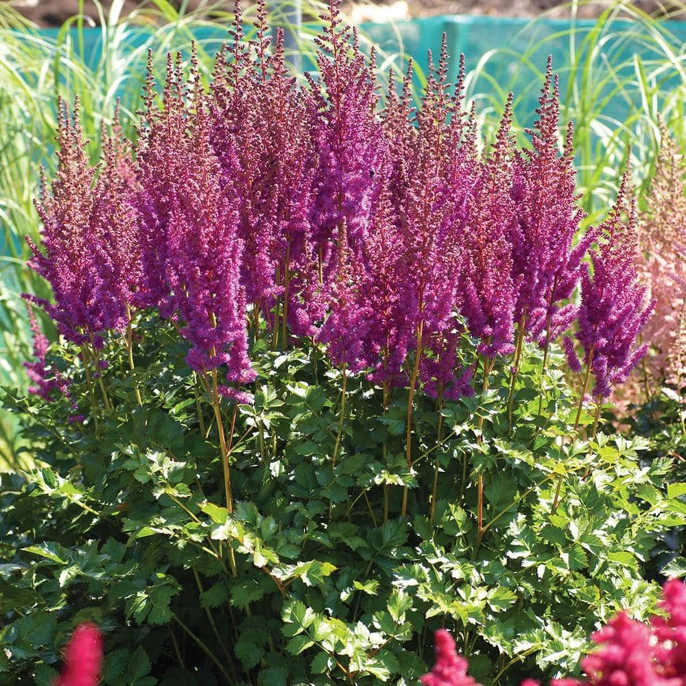 Astilbe are very popular, rugged, versatile, shade lovers that thrive in moist conditions. They produce tall, long, elegant, colorful plumes above divided fern-like green foliage in the summer. It adds bursts of impressive color to the garden landscape. Best yet, they are low maintenance, attract butterflies, but are deer and rabbit resistant. They are quite diverse with hundreds of varieties available. Each overachieves in providing splendid flower shows. Use them in groups or mass them to create a ground cover. Pick for cutting when they are half opened. Blackberry Cake grows sturdy fernlike foliage and stems with tall, dark rose plums.