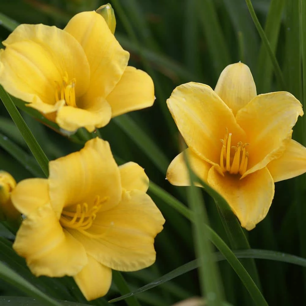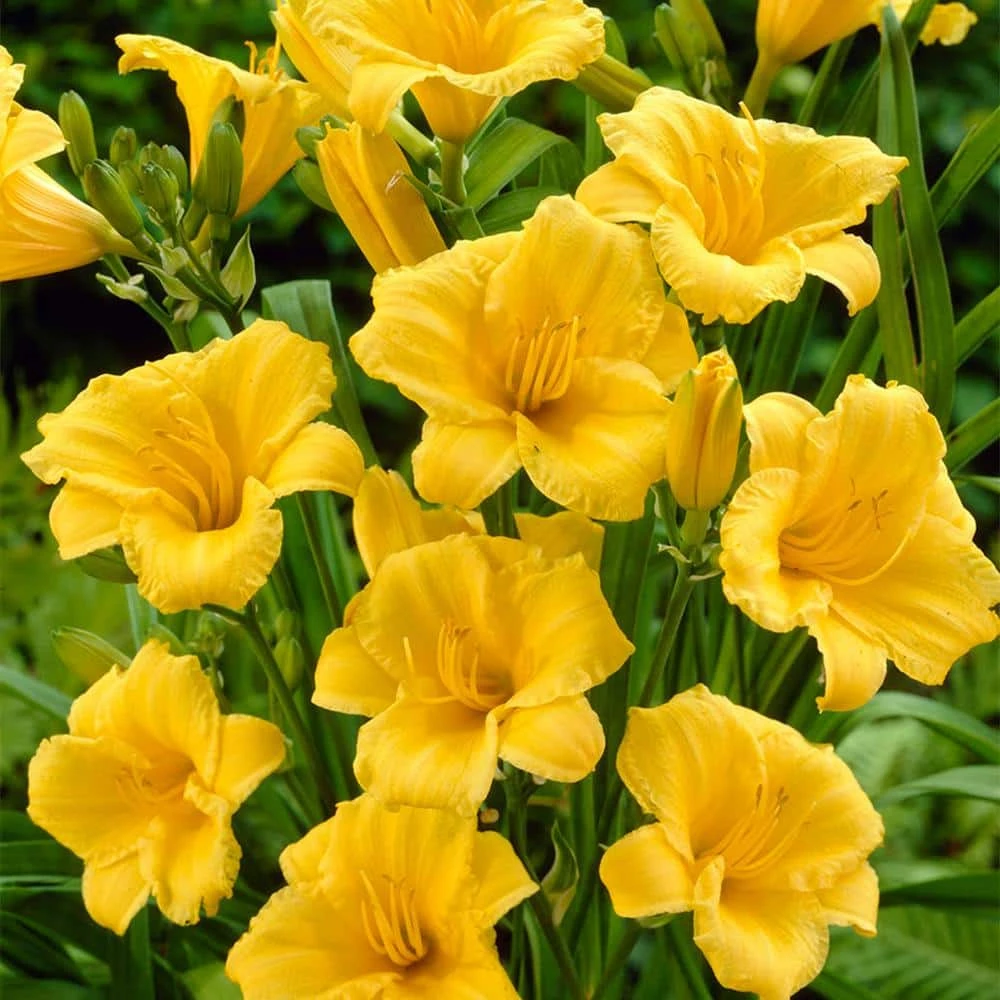 The daylily (Hemerocallis) is considered a sure bet perennial, as they thrive throughout most of the country, with the exception of the very deep south. They tolerate less than ideal conditions and will bloom faithfully for years with virtually no attention. As the name implies, daylily flowers open in the morning and close by nightfall. Each flower stem, typically, has at least a dozen flower buds and the plant stays in bloom for many weeks. They should be planted in every garden. Stella de Oro is a multiple AHS award winner and it is perhaps the most popular daylily in cultivation world wide. It flowers yellow, with deeper throats and ruffled edges. The leaves are linear and blade-like. Its’ flower is classified as a miniature. It is appreciated for it’s compact size, vigorous growth, profuse bloom and extended blooming period. Very easy to grow and a garden staple. Plant en masse in broad sweeps for massive curb appeal. Will return for years to come.