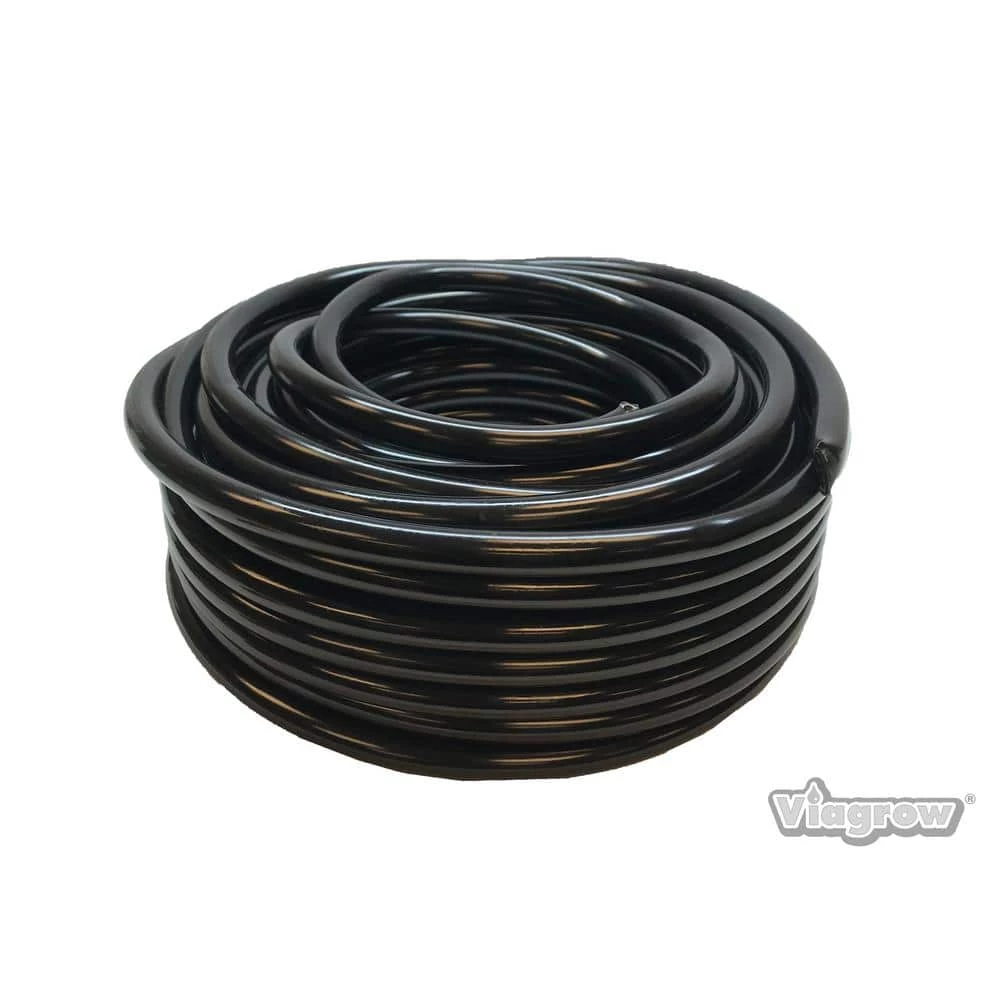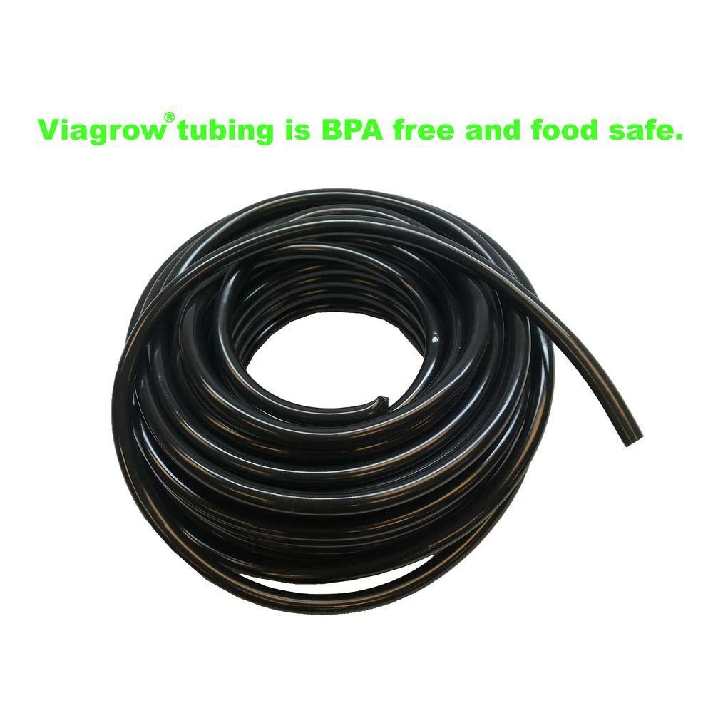 Viagrow Food Grade Multipurpose tubing can be used for irrigation lines, Beer Line, Kegerator, Wine Making, Airline Tubing for Aquarium application. Viagrow Food grade PVC hose can be used in hydroponics, aquaponics, DWC ( Deep Water Culture ) hydroponic kits and is great for grow rooms and green houses and our 1/2 in. and 3/4 in. tubing will accommodate most ebb and flow or flood and drain hydroponic kits. The Viagrow multipurpose food grade tubing is available in 100 ft. roles and the following sizes: Part number V708215: 3/16 in. ID – 1/4 in. OD clear tubing Working pressure PSI 43.5 Working temp -5-65C/23-149F Part number V708265: 1/2 in. ID – 5/8 in. OD black food grade PVC tubing Working pressure PSI 58, 43.5 Working temp -5-65C/23-149F Part number V708201: 1/2 in. ID-5/8 in. OD translucent blue tubing Working pressure PSI 58, 43.5 Working temp -5-65C/23-149F Part number V708245: 3/4 in. ID – 1 in. OD, black food grade PVC tubing Working pressure PSI 43.5, 43.5 Working temp -5°C to 65°C/23°F to 149°F.