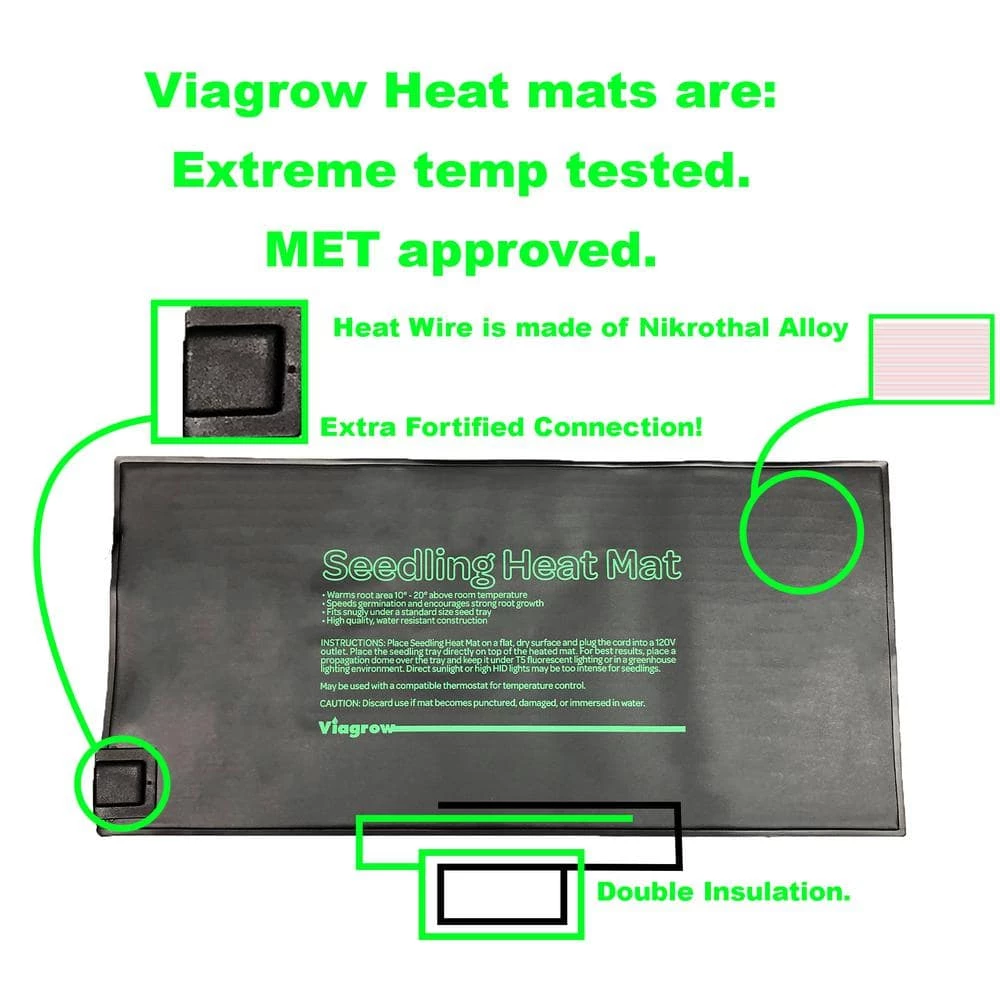 Studies have proven that plants with a root zone that is kept warm thrive and propagate at a much faster rate than plants that do not. Simply place the Seedling Heat Mat on a flat, dry surface under a seedling tray and plug the cord into a 120-Volt outlet. For best results, use propagation dome over the seedling tray and keep it under T5 fluorescent lighting or in a greenhouse lighting environment. Direct sunlight or high HID lights may be too intense for seedlings.