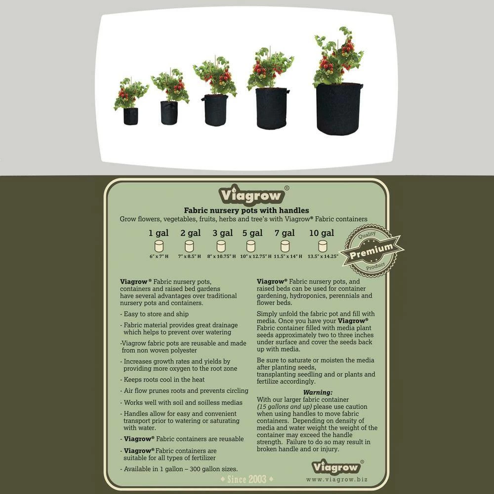 Fabric Aeration Pots are durable enough to last for multiple seasons of gardening while creating an oxygen healthy root system for the plant. Designed to allow roots to breathe, these pots stand up well to heavy harvests and can be used for soil or hydroponic applications both indoors and outdoors. The aeration pots are made of 100% new polypropylene (PP) and are environmental friendly. Please note that our pots are measured in trade gallons. A Trade gallon is a term used to denote the sizes of standard plant containers in horticultural industries. A trade gallon is equal to approximately 0.71 U.S. liquid Gallon.