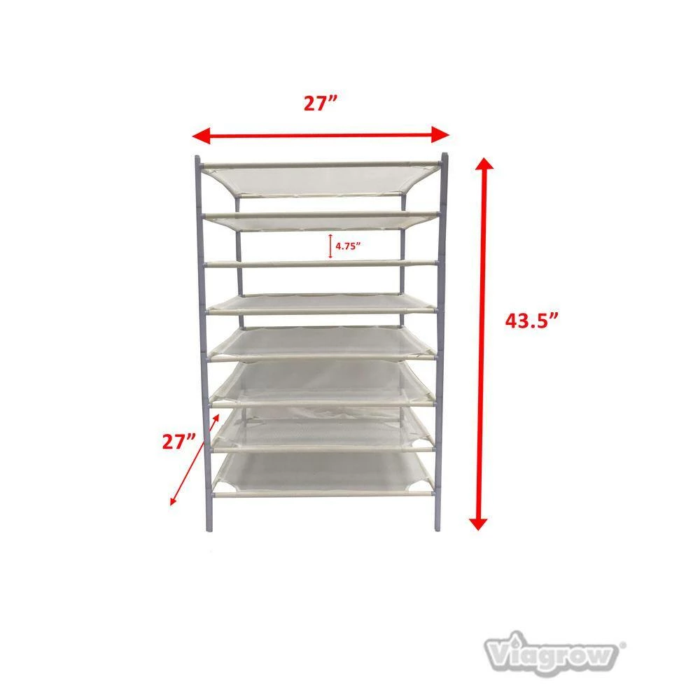 The Viagrow 8 layer drying rack is great for drying sweaters, clothes, shoes, swimsuits, toys, herbs and much more. Each net retracts and each rack can be used individually or can be stacked. Easy to use, Clean and put together – no tools required. The Viagrow dry rack is portable and easy to store when not in use and can be used outside or inside.