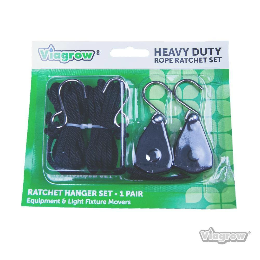 The Viagrow Ratchet HookLight Hanger Movers are easy to use allowing you to hang and move grow lights, carbon filters and other growing accessories. The 8 ft. braided polypropylene cord and ratcheting mechanism provide easy hoisting and securing. Have a 150 lbs. weight capacity per pair.